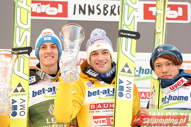 W Innsbrucku odbył się dziś trzeci konkursu Turnieju Czterech Skoczni. Kamil Stoch przeogromnie ucieszył nas wszystkich w pierwszej serii oddając niesamowity skok na 132,5 m, dającym mu prowadzenie. Niestety - w drugiej serii został puszczony w gorszych warunkach i jak sam powiedział - "popełniłem po prostu błąd i kosztował on mnie bardzo dużo". Na pewno nie odbędzie się bez dyskusji kibiców, co do skoku Kamila. Na skok Andreasa Koflera jury czekało bardzo długo - dla Austriaka wiatr nie przekraczał 1 m/s. Kamil miał gorsze warunki i jury zdecydowanie mogło poczekać, tak jak to zrobiło dla Andreasa. W finale Stoch skoczył tylko 108. A do wygrania wystarczyło tylko ok. 120 m... I spadł na 9 miejsce. Kofi wygrał (127,5 i 131,5 m), tym samym przerywając zwycięską passę Gregora i jego chęć na powtórzenie wyczynu Hannawalda. Schlieri ze skokami na 130,5 i 123 m nie zdołał pokonać Wafelka i musiał zadowolić się tylko drugim miejscem. Ale cały TCS oczywiście wygra. Na trzecim miejscu był dziś Japończyk Taku Takeuchi (131,5 i 124 m). Pechowy konkurs miał dziś też Daiki Ito, który do dziś był na trzecim miejscu klasyfikacji TCS. Podobnie jak Kamil skakał w mocno niekorzystnych warunkach uzyskując 91,5 m, a zawody zakończył dopiero na 27 miejscu.